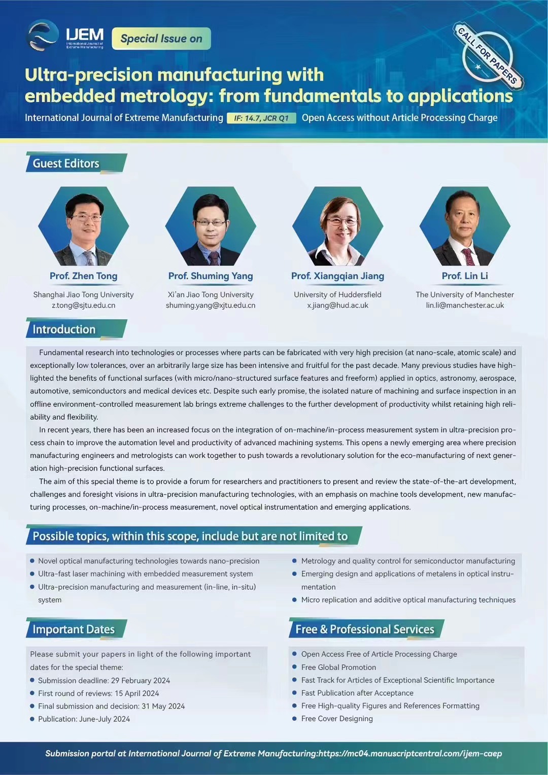 论文由IEEE出版,优秀报告也将邀请扩展全文后,推荐到《纳米制造与计量》 、《极端制造》专刊。