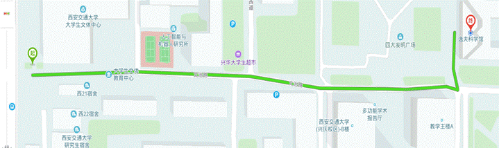 兴庆校区北门至开会地点逸夫科学馆